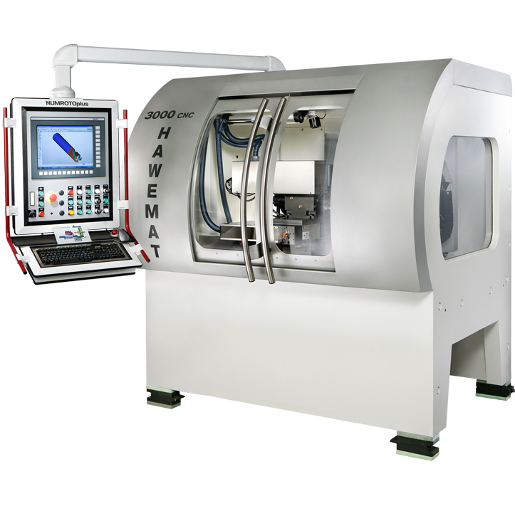HAWEMAT 3000 是一個將磨削空間完全包覆於人造大理石床身一體化的數控工具磨床。軸向的部分主要針對大直徑的刀具加工而設計,搭載20KW大功率主軸。不論是效率還是精度上都能精準實踐。應用全球專利的 KINEMATIK技術,迴轉B軸搭載上下雙支撐和高精度各軸有利於生產和修磨銑刀、鑽頭和對稱螺旋類以及各式成形刀。程式和電控制系統的部分,使用目前全球知名瑞士的NUM控制系統和磨削軟體可使的程式應用上更簡單化並且得心應手。 *主要針對中大型刀具加工應用